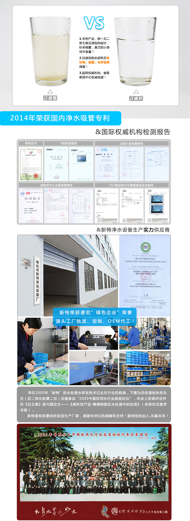 野外凈水生命吸管是一種輕巧、便捷、安全的戶外便攜式吸管型凈水器,新特研發(fā)的專利產(chǎn)品戶外便攜式凈水器是殺菌介質(zhì)與物理過濾完美的結(jié)合,可立即將河水、雨水、湖水等天然水凈化為直接飲用水,可過濾病毒、細(xì)菌、有機(jī)物、重金屬等沒有二次污染!