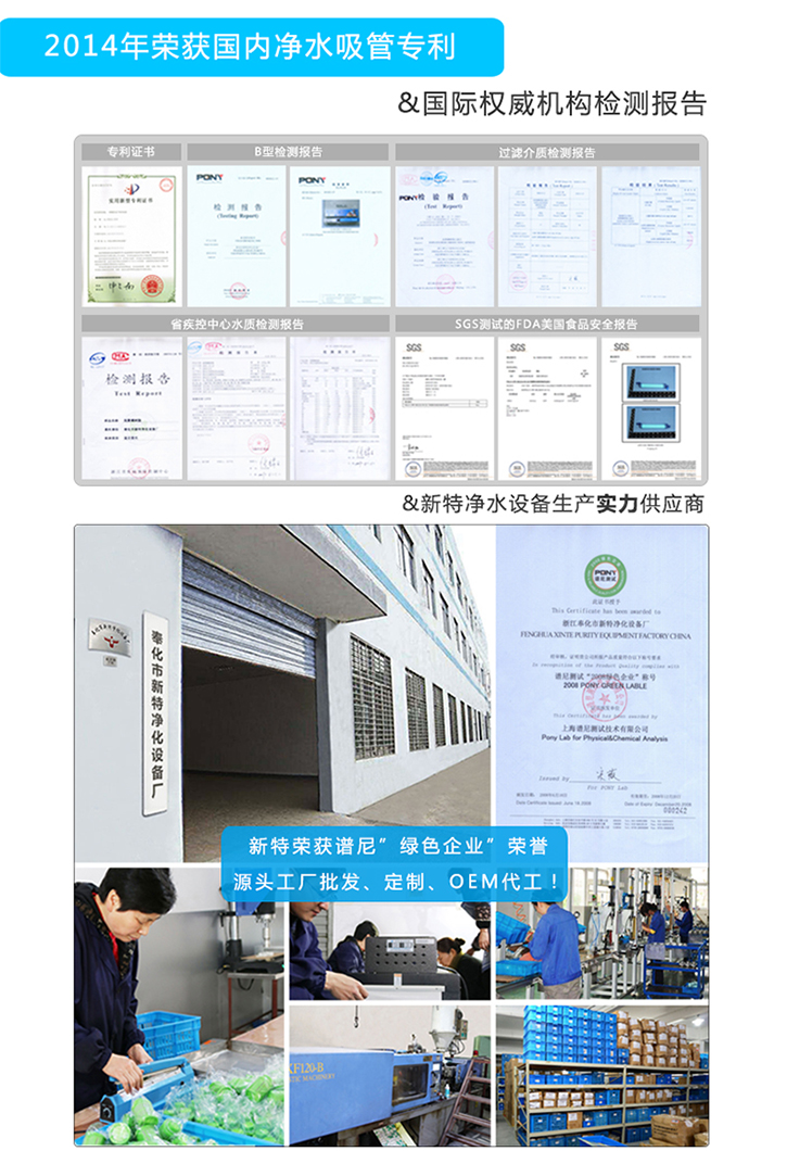 產(chǎn)品優(yōu)勢:B1型能直接過濾出含有益礦物質(zhì)的飲用水,吸水順暢,沒有二次污染。新特專利款,國際權(quán)威機(jī)構(gòu)檢測SGS、譜尼等檢測報(bào)告,安全便捷!B2型除了擁有B1型的產(chǎn)品優(yōu)勢以外,還可以去除水中的各種重金屬物質(zhì),是新特的獨(dú)家研發(fā)專利產(chǎn)品!